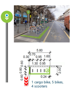 Properly implemented, micro-mobility parking zones can also contribute to a safer design of junctions, for example through better visual relationships when car parking spaces are converted.