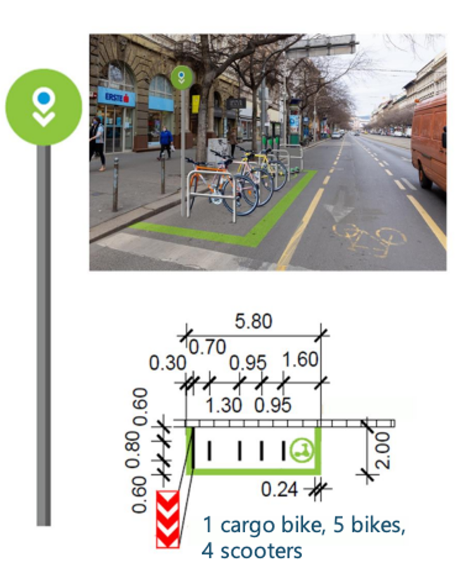 - (Micro) Mobility Point: in densely populated areas, at every 150 metres for micromobility vehicles only (bicycle, scooter, cargo bicycle)