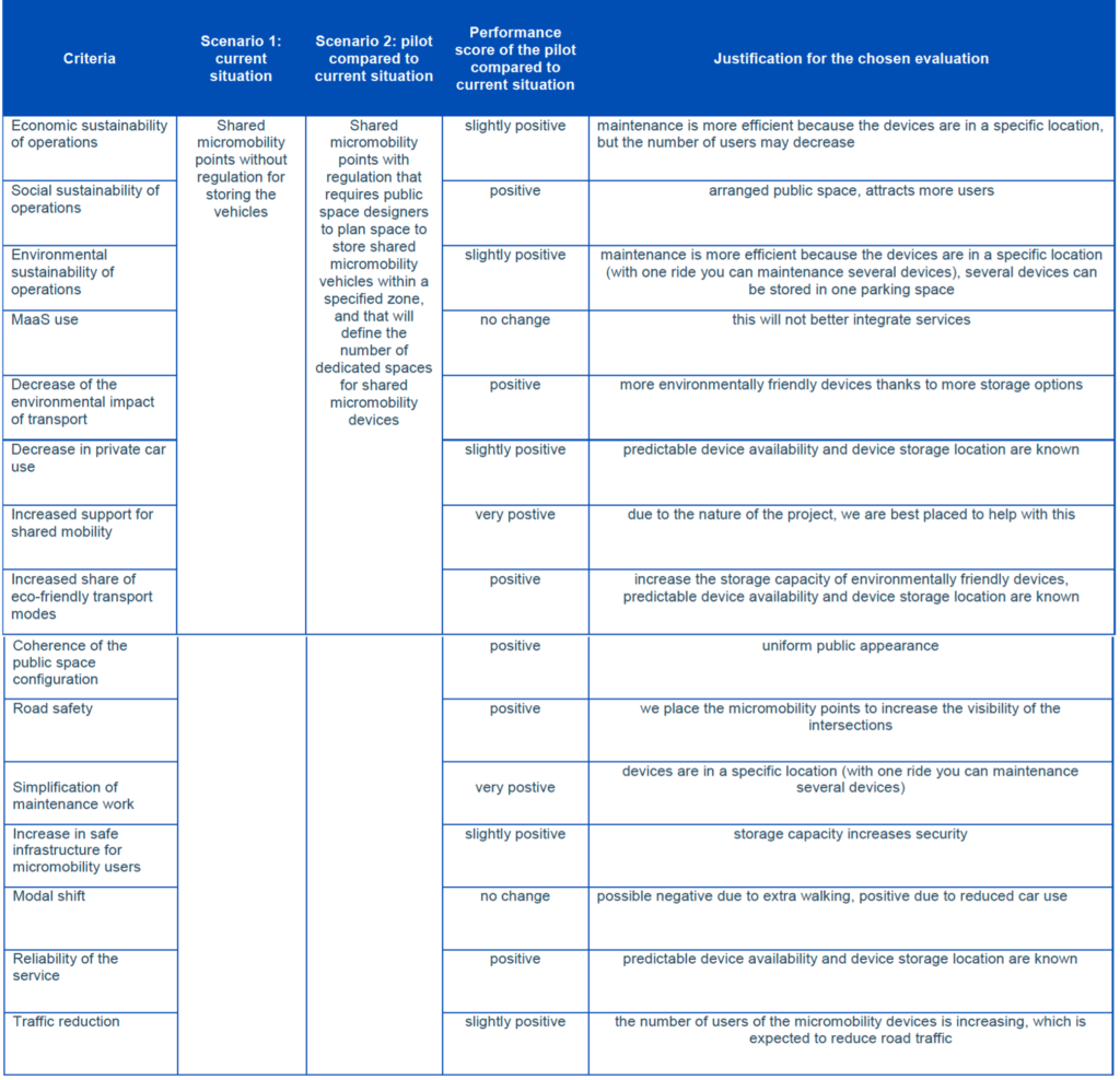 Compared to the pilot as it is, the impact scoring showed that adaptation of binding standards for micromobility points has positive effects for all stakeholders. Following the analysis, coherence of the configuration of public space and the reduction of the environmental impact of transport are the most important advantages. The advantages are especially pertinent for the infrastructure operator and the users of micromobility services, yet no stakeholders are expected to be negatively impacted by the implementation of the regulations.